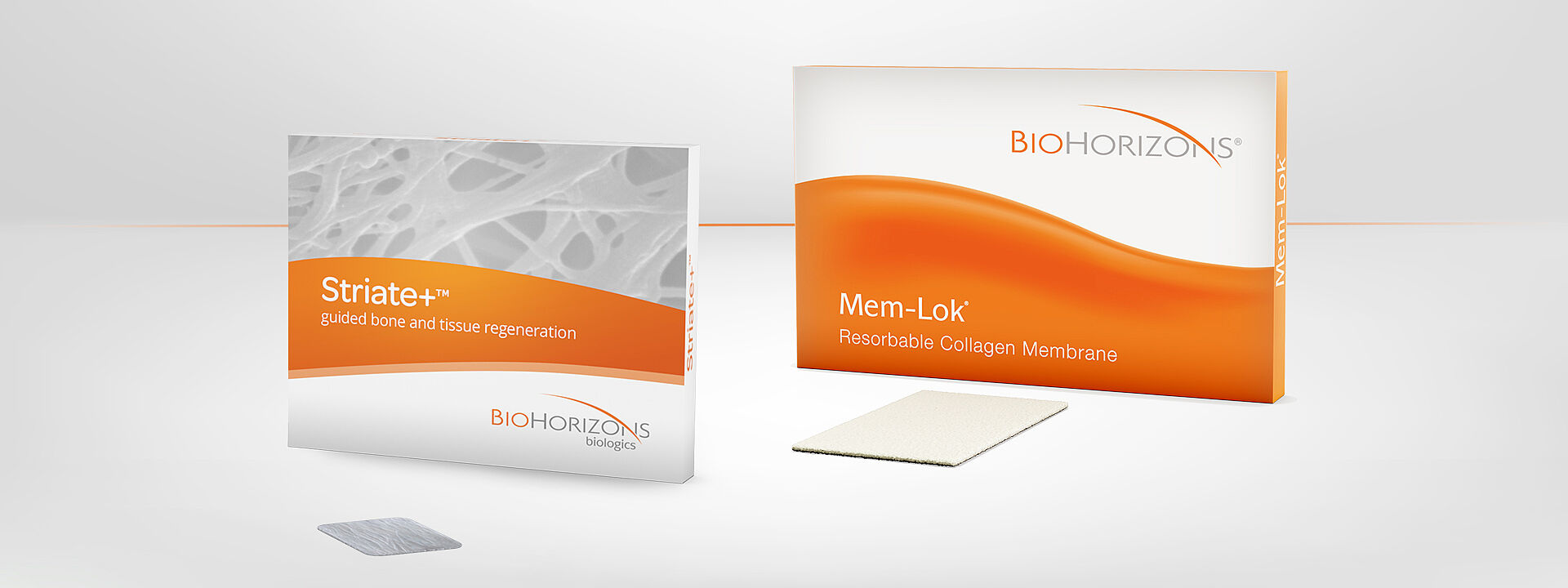 Striate+™i Mem-Lok™ RCM to skuteczne memebrany barierowe, które zapobiegają wrastaniu tkanki miękkiej i umożliwiają powstawanie nowej kości. Striate+ to błona kolagenowa wykonana z tkanki wieprzowej. Ulega całkowitemu wchłonięciu po około 26 tygodniach. Striate+ charakteryzuje się m.in. dużą wytrzymałością na rozciąganie i rozerwanie, a także zdolnością dostosowania podczas jej umieszczania.